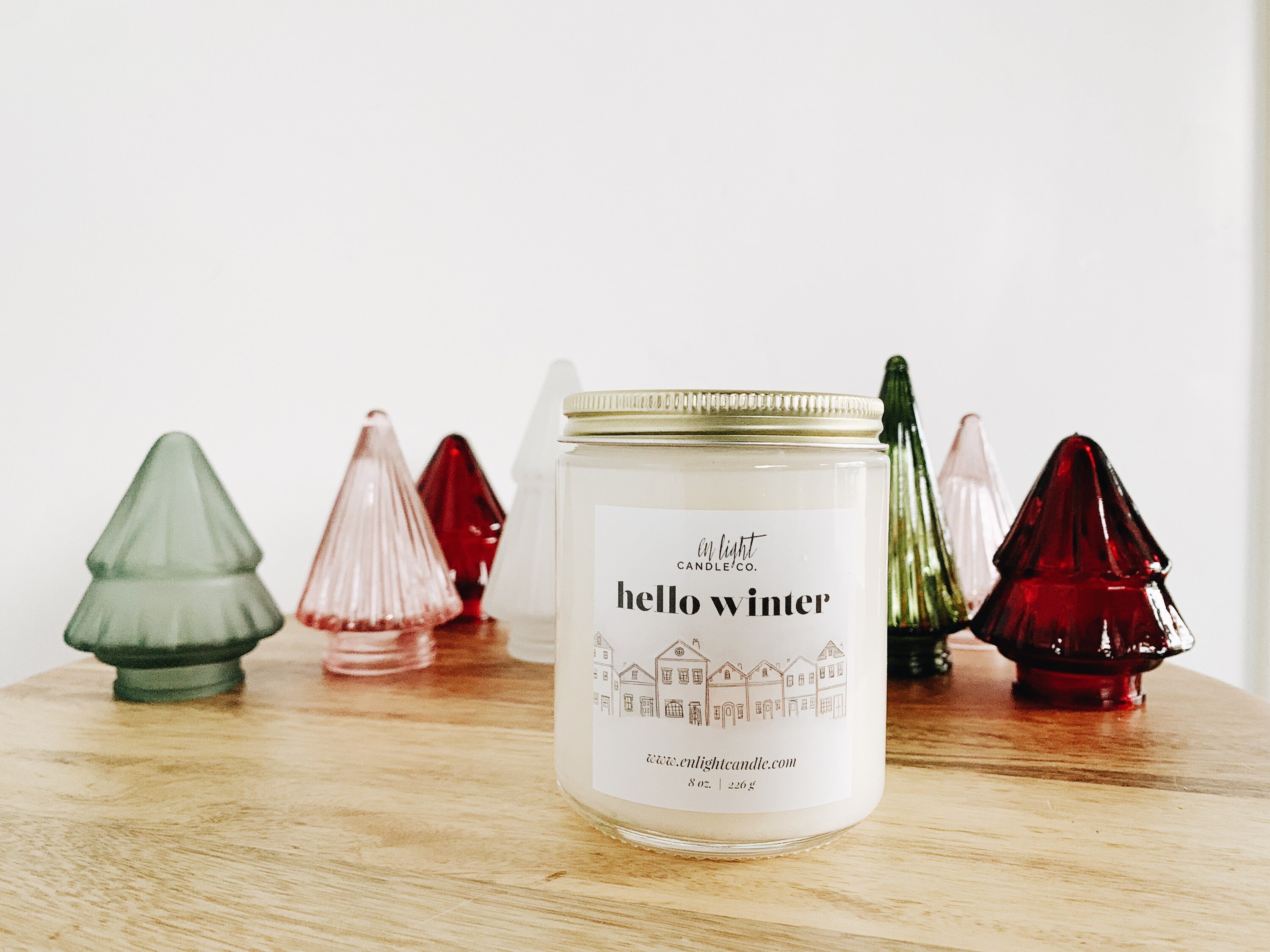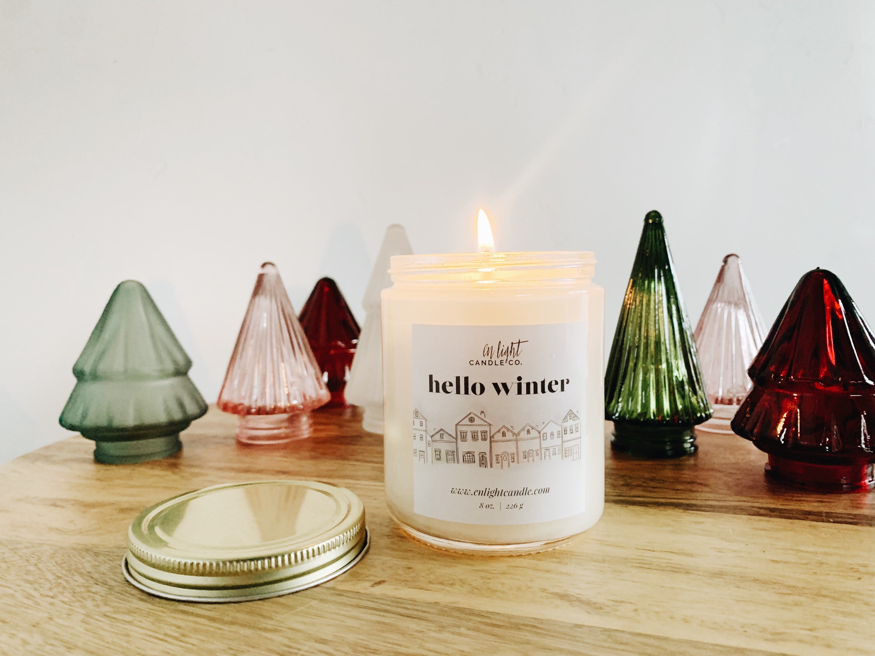 Hello Winter | 4 or 8 oz Pure Soy Candle | Fir Needle, Clove & Orange Peel | Best Winter Holiday Candle | Cozy, Spicy, Winter Candle